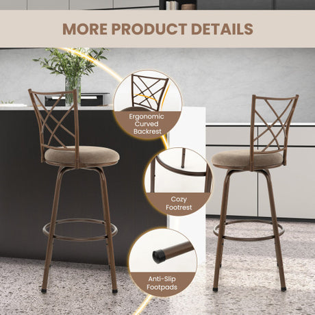 2 Pieces Swivel Pluch Fabrice Cushioned Bar Stool Set-Brown