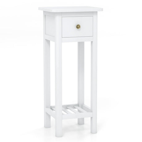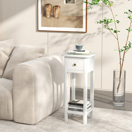 2 Tier Slim Nightstand Bedside Table with Drawer Shelf-White