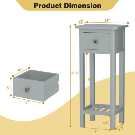 2 Tier Slim Nightstand Bedside Table with Drawer Shelf-Gray