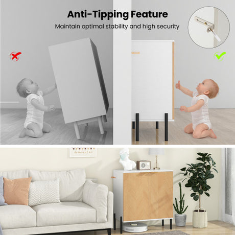 2-Door Buffet Cabinet Sideboard with Shelf and Metal Legs-White-Natural Wood