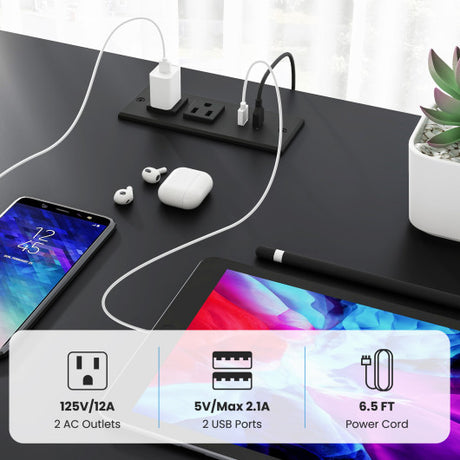 2-Person Reversible Computer Desk Long Office Desk with LED Lights-Black