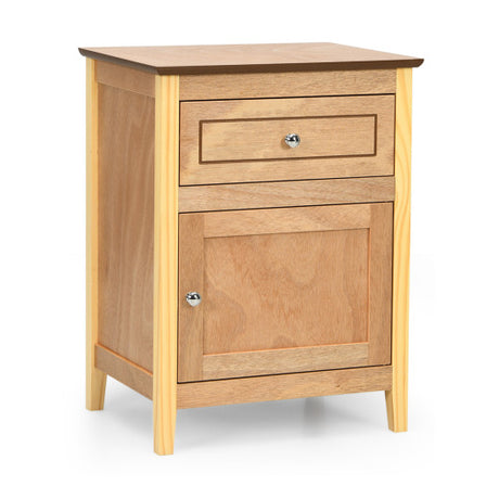 2-Tier C-Shaped Reversible End Table with Wooden Shelf for Living Room-Brown