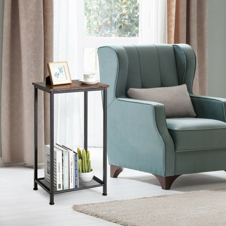2-Tier Industrial End Table with Metal Mesh Storage Shelves