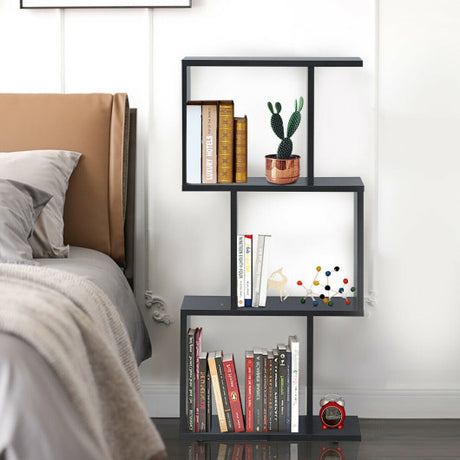 2/3/4 Tiers Wooden S-Shaped Bookcase for Living Room Bedroom Office-3-Tier