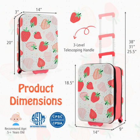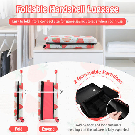 20 Inch Kids Rolling Luggage Foldable Hardshell Carry-on Suitcase on Wheels-Pink