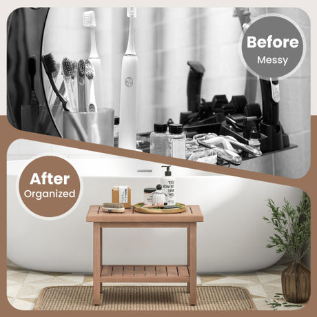 21.5 Inch Round Bar Table Patio HDPE Bar Height Dining Table with Slatted Tabletop-Brown