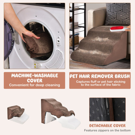 22 Inches and 11 Inches Foam Pet Stairs Set with 5-Tier and 3-Tier Dog Ramps-Brown