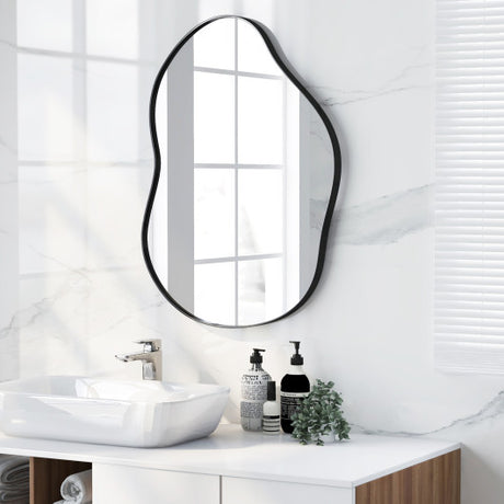 22 Inch x 30.5 Inch Irregular Wall Mounted Mirror with Premium Back Board-Black