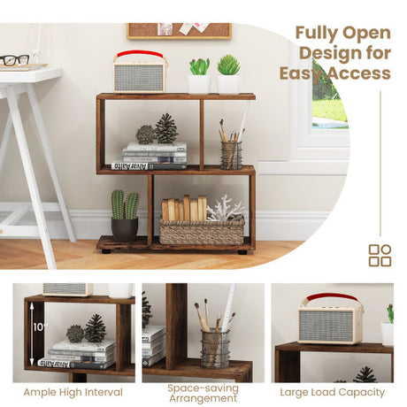 24 Inch 3-Tier Geometric Bookshelf with Thick Foot Pads-Brown