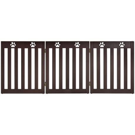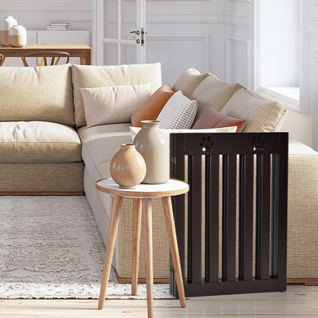 24 Inch Folding Wooden Freestanding Pet Gate Dog Gate with 360° Hinge -Dark Brown