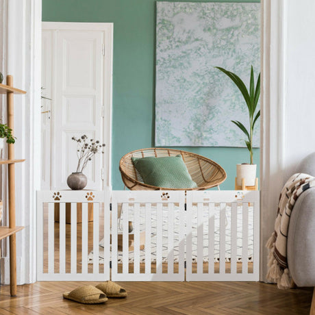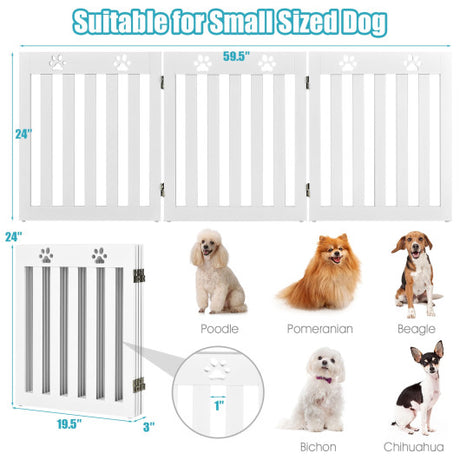 24 Inch Folding Wooden Freestanding Dog Gate with 360° Flexible Hinge for Pet-White