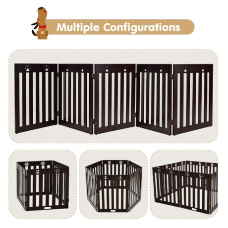 24 Inch Folding Wooden Freestanding Dog Gate with 360° Flexible Hinge for Pet-Dark Brown