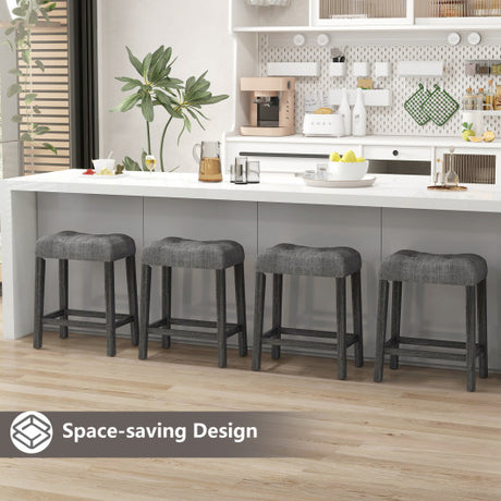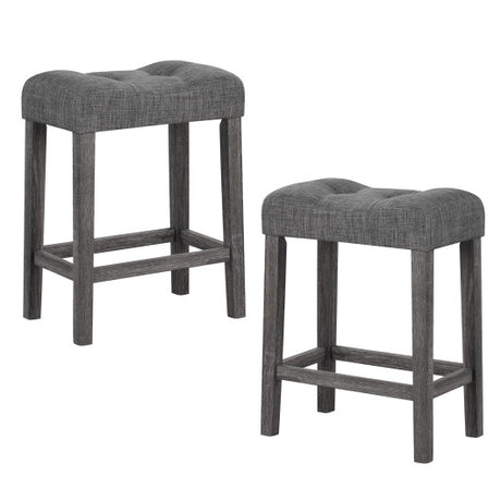 24 Inch Set of 2 Saddle Bar Stools with Padded Seat-Gray