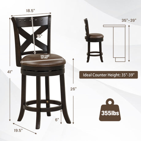 26 Inch Swivel Bar Stool with Curved Backrest PU Leather Seat and Footrest-26 inches