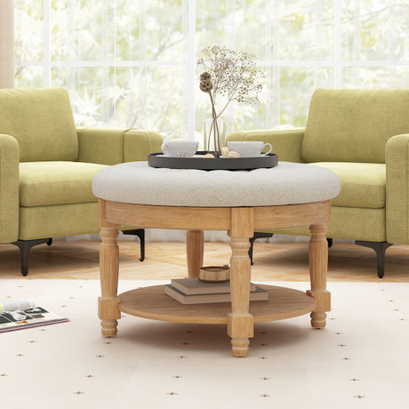 29 inch Swivel Upholstered Counter Height Bar Stool with Rubber Wood Legs