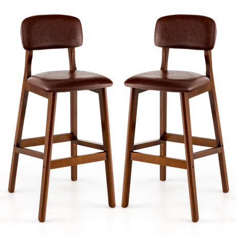 29 Inch Upholstered PU Bar Stools with Rubber Wood Legs-Set of 2