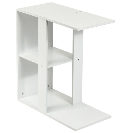 3-Tier Ladder-Shaped Chair Side Table with Storage Shelf-White