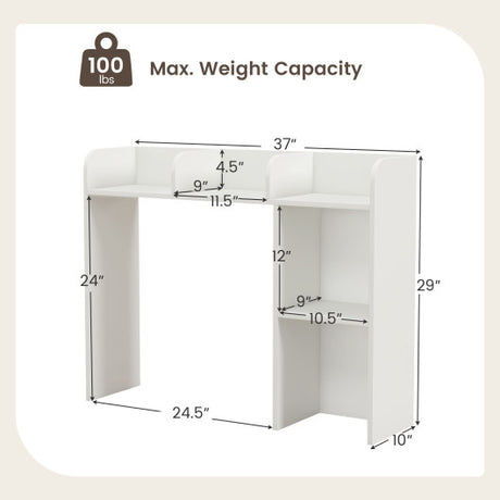 3-Tier Multipurpose Desk Bookshelf with 4 Shelves-White