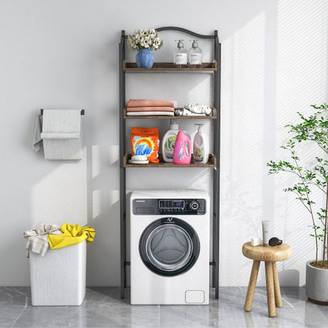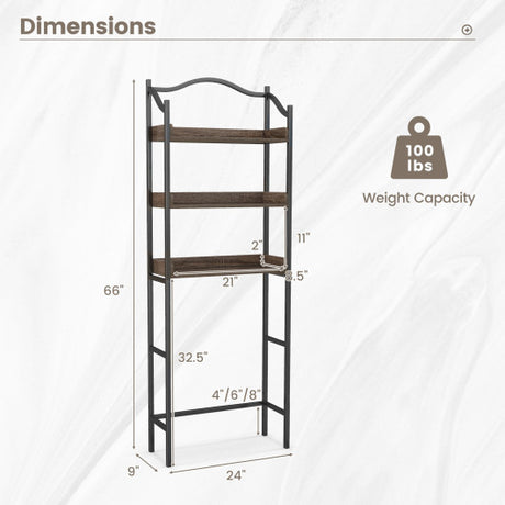 3-Tier Over-the-Toilet Storage Rack with 3 Hooks-Rustic Brown