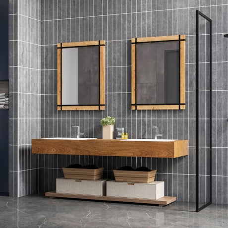 30 x 40 Inch Wall Mounted Mirror with Fir Wood Frame-Natural