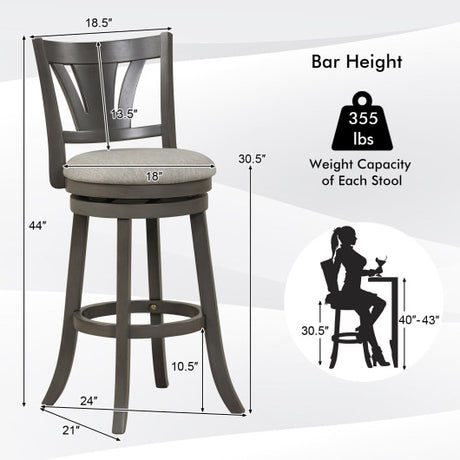 30.5 Inch Swivel Bar Stool with Backrest Soft Cushioned Seat and Footrest Gray-30.5 inches