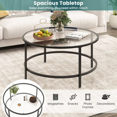 36 Inch Round Coffee Table with Tempered Glass Tabletop-Black