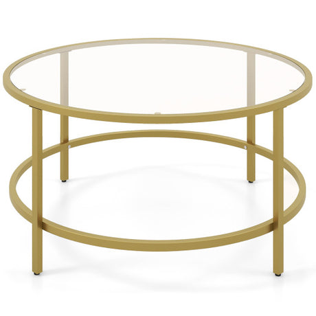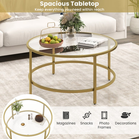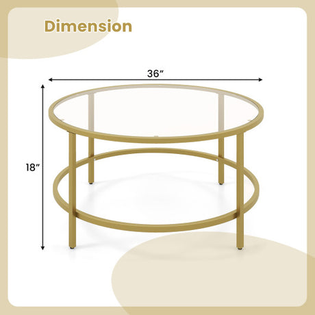 36 Inch Round Coffee Table with Tempered Glass Tabletop-Golden