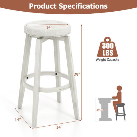 360-Degree Swivel Upholstered Rubberwood Frame Bar Stool Set of 2 with Footrest-29 inches