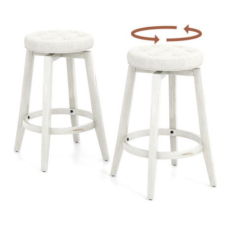360-Degree Swivel Upholstered Rubberwood Frame Bar Stool Set of 2 with Footrest-24 inches