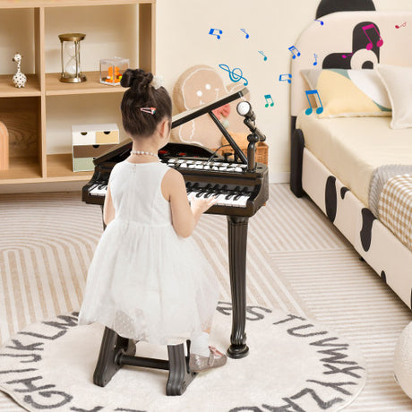 37 Keys Music Piano with Microphone Kids Piano Keyboard with Detachable Music Stand-Black