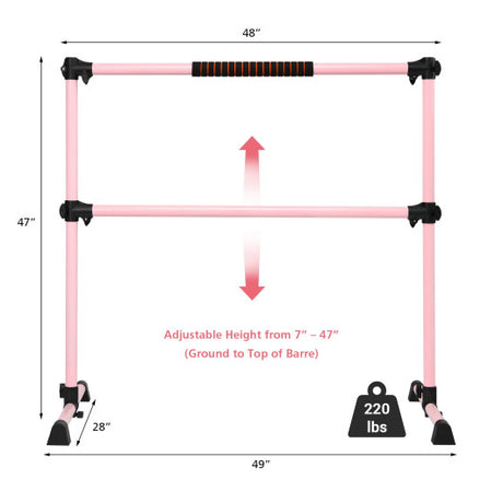 4 Feet Portable Ballet Barre with Adjustable Height-Pink