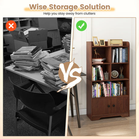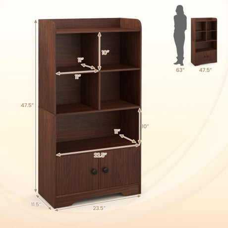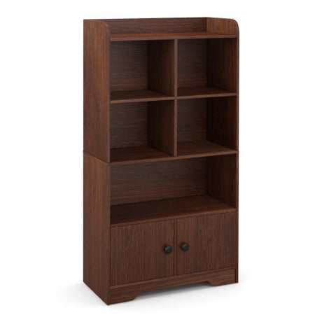 4 Tiers Bookshelf with 4 Cubes Display Shelf and 2 Doors-Brown