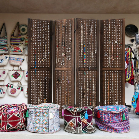 4-Panel Pegboard Display 5 Feet Tall Folding Privacy Screen for Craft Display Organized-Natural