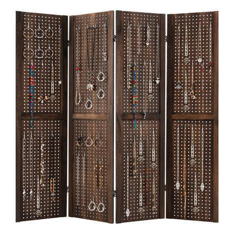 4-Panel Pegboard Display 5 Feet Tall Folding Privacy Screen-Brown