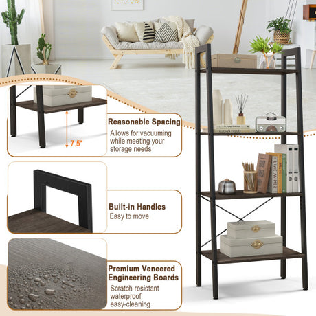 4-Tier Bookshelf with Metal Frame and Adjustable Foot Pads-Oak