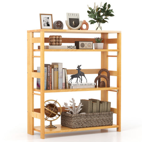 4-Tier Bookshelf Rubber Wood Bookcase with Side Fences for Living Room-29.5 inches