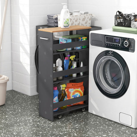 4-Tier Rolling Storage Cart Slim Kitchen Cart on Wheels with Open Shelves and Handle-Gray