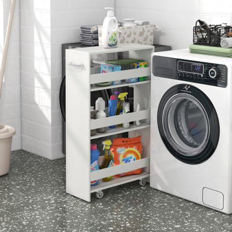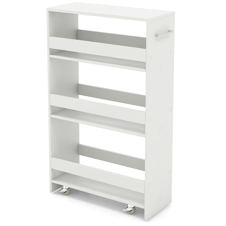 4-Tier Rolling Storage Cart Slim Kitchen Cart on Wheels with Open Shelves and Handle-White