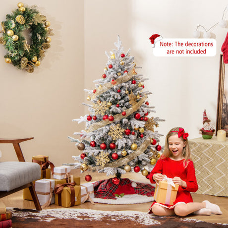4.5 Feet Pre-Lit Premium Snow Flocked Christmas Tree with 150 Lights