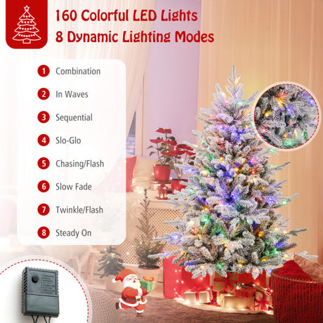 4.5 Feet Flocked Christmas Tree with 8 Lighting Modes and Multi-Color LED Lights-4.5 ft