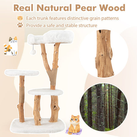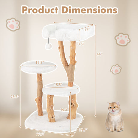 44 Inch Solid Wood Cat Tree with Perch and Natural Jute Scratching Posts-White