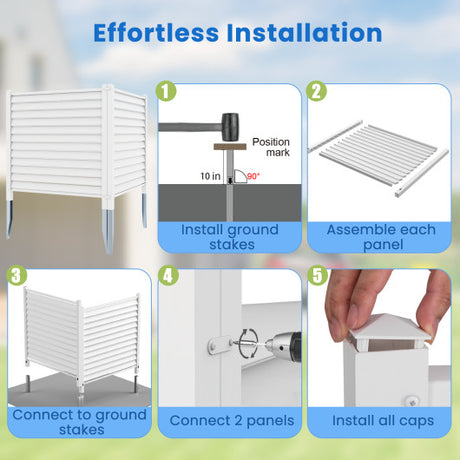 44 x 45 Inch Vinyl Picket Fence Panels with Metal Ground Stakes-White