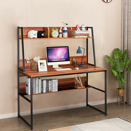 47.5 Inch Writing Study Computer Desk with 4-Tier Shelves-Tan