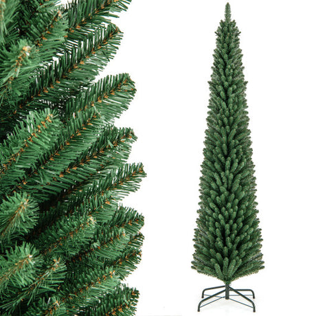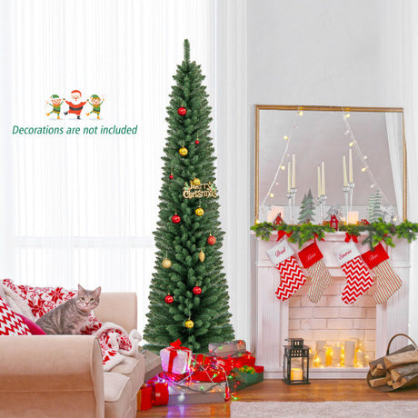 5/6/7/8 FT Pre-Lit Christmas Pencil Tree with Colorful Fiber Optics Green-7 ft