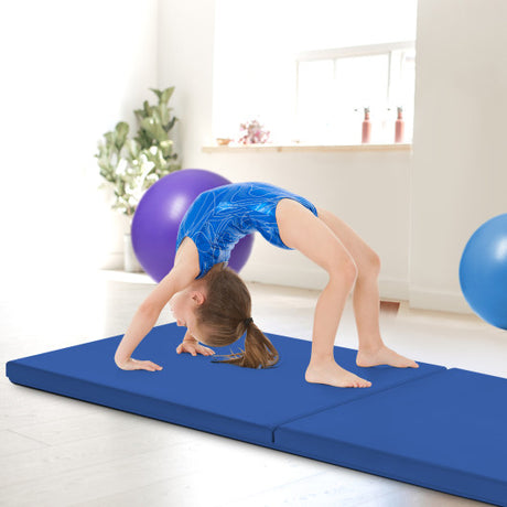 6 x 2 FT Tri-Fold Gym Mat with Handles and Removable Zippered Cover-Blue