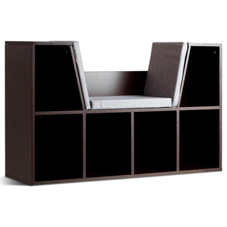6-Cubby Kid Storage Bookcase Cushioned Reading Nook-Brown