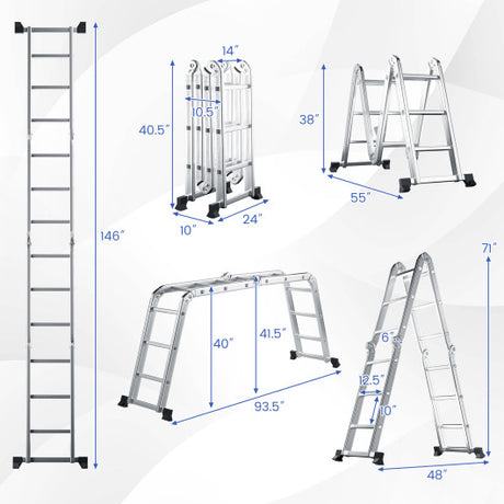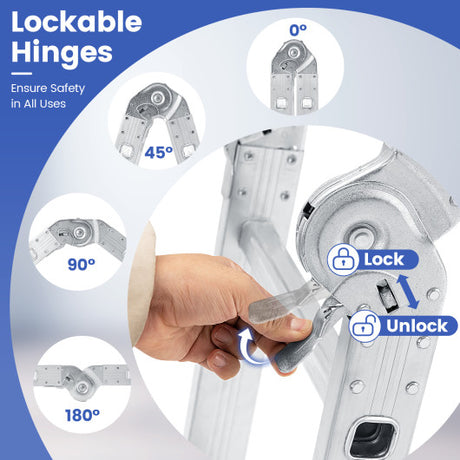 7-in-1 Folding Aluminum Ladder with Anti-Skid Pedal