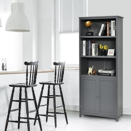 Bookcase Shelving Storage Wooden Cabinet Unit Standing Display Bookcase with Doors-Gray