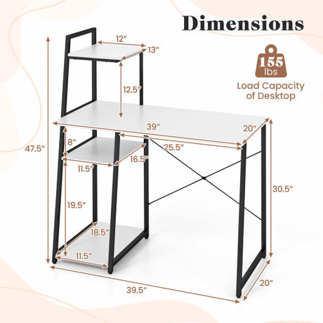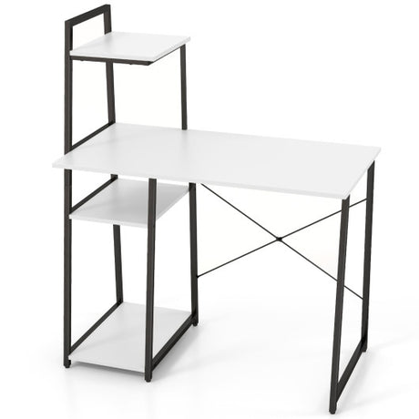 Compact Computer Desk Workstation with 4 Tier Shelves for Home and Office-White