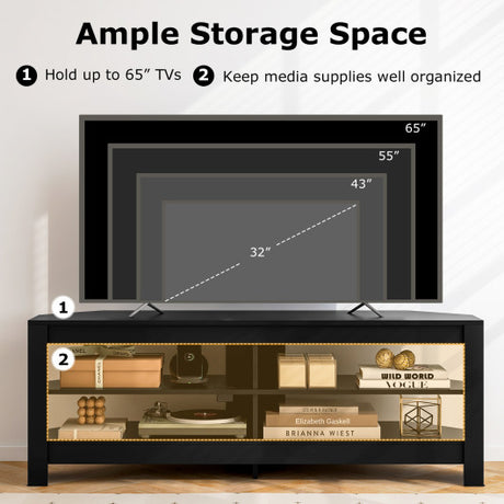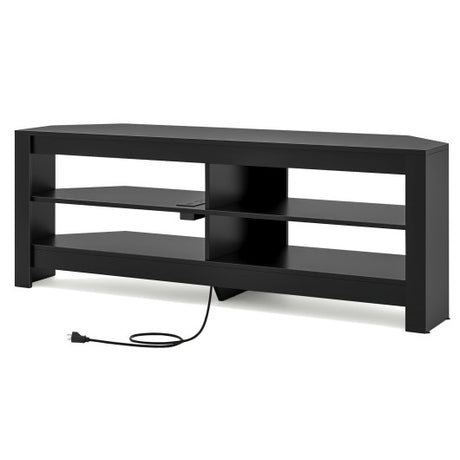 Corner TV Stand with Power Outlet and 4 Open Storage Shelves-Black